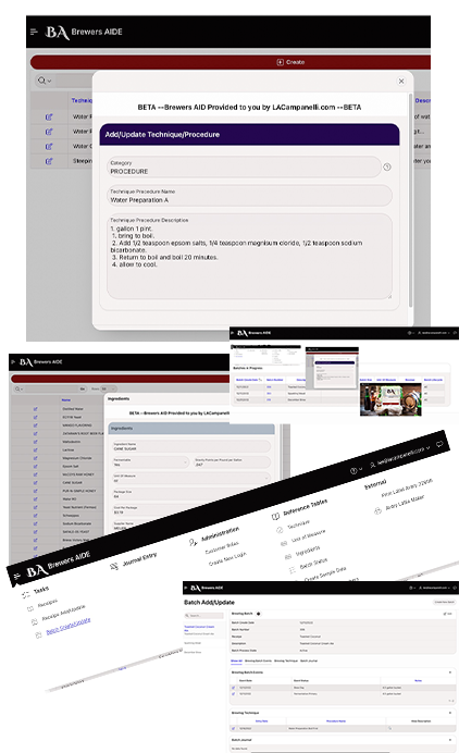Brewer's AIDE is a custom built application designed to assist and Aid the Home brewer achive better and more consistant results simplifying the important task of tracking your brew. You may also attach notes (journal entries) to each brew batch. Record your taste testing reviews all the way to the last glass.