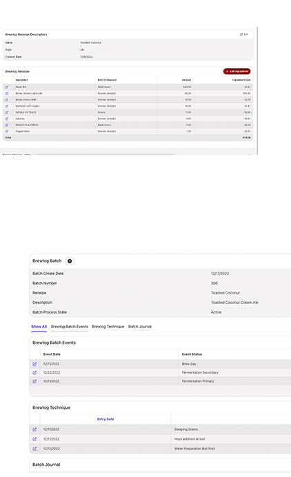 • Batch Events --Brew Day, Fermentation Primary, bottling day more...