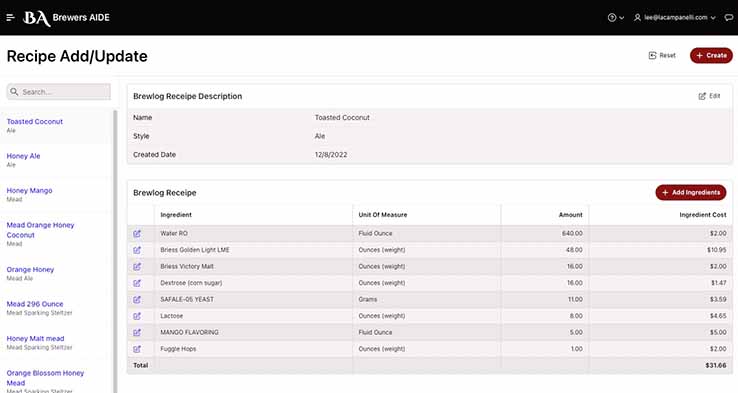• Recipe creation is a very quick, consistent, and error free process. Brewer's AIDE makes brewing consistant , repeatable batches fast and easy. Good organization equals better brewing.